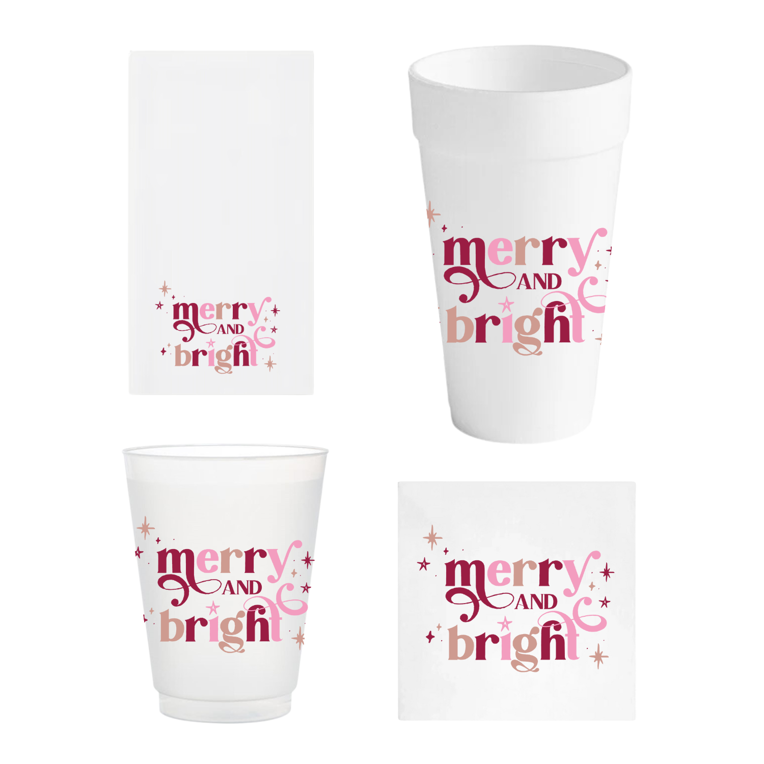 Rose Gold Merry & Bright Holiday Cups & Napkins
